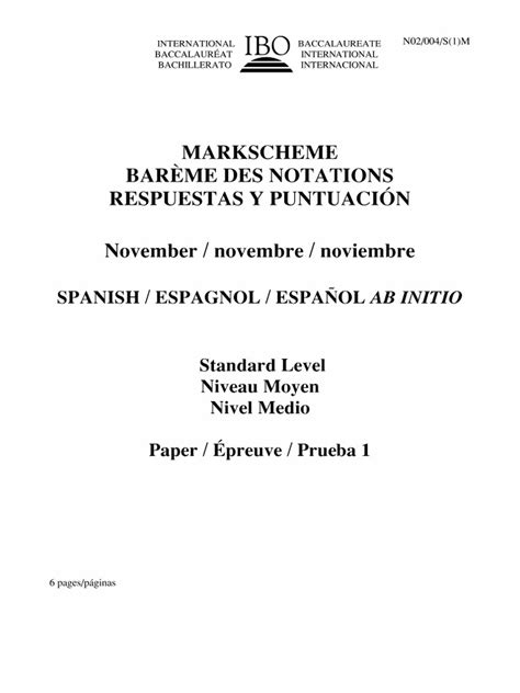 Online PDF Ib Spanish 2 Sl Paper 1 Markscheme Hardcover Library Genesis